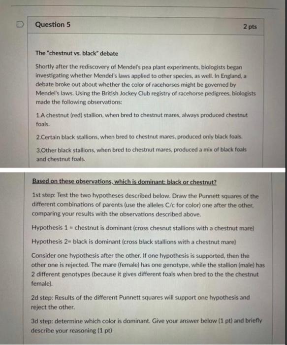 Solved Question 5 2 Pts The Chestnut Vs Black Debate Chegg Com